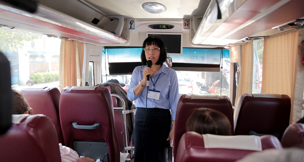 Trên xe, các khách mời vừa ăn sáng nhẹ nhàng vừa tíu tít hỏi tên làm quen.