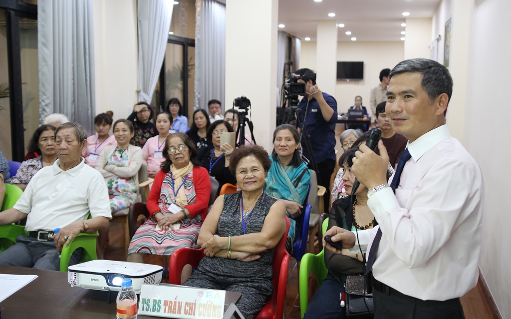 Phần giao lưu của TS.BS Trần Chí Cường diễn ra lúc 8 giờ tối với chủ đề “Xử lý cấp cứu đột quỵ” nhận được sự quan tâm của các vị khách tham gia trải nghiệm 24 giờ ở Trung tâm chăm sóc Người cao tuổi Hoa Sen Nhật Bản.