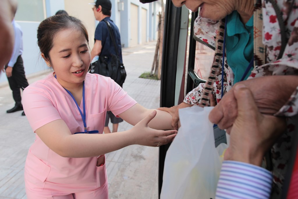 Gương mặt hào hứng, nụ cười hài lòng nở trên môi các cô bác khi được chứng kiến phong cách chỉn chu, ân cần của những người điều dưỡng lẫn nhân viên quản lý