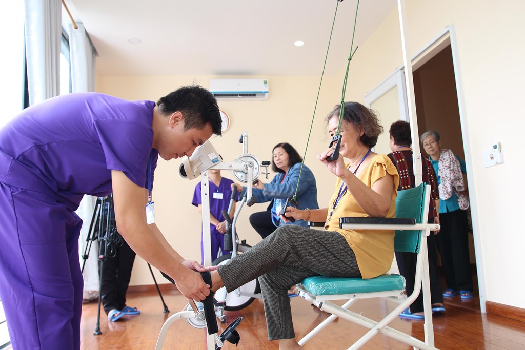 Ngoài các hoạt động chăm sóc sức khỏe như tập thể dục, vật lý trị liệu, ấn huyệt xoa bóp, trung tâm còn chú trọng tổ chức các chương trình nâng cao tinh thần cho người lớn tuổi đảm bảo hai tiêu chí: Vui và Khỏe, chẳng hạn: xếp giấy, kết hạt làm đồ thủ công mỹ nghệ, hát karaoke, đi dạo công viên…