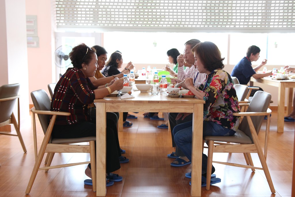 Với kinh nghiệm xây dựng 13 viện dưỡng lão ở Nhật Bản, ở trung tâm Hoa Sen Nhật Bản các vật dụng như bàn ăn đều được thiết kế theo tiêu chuẩn, phù hợp với người già